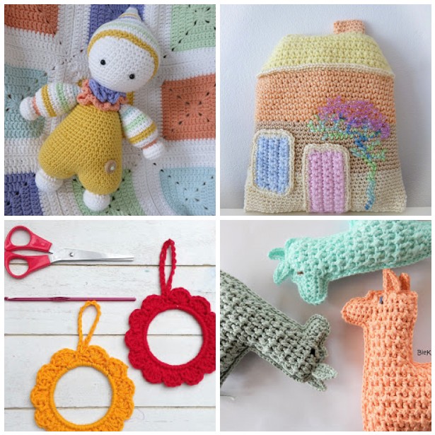 | 1. Frog by Maaksels van CarlaK 2. Bag by Draad en Papier 3. Blanket by Haak & Maak 4. Scarf by Sew Crafty Crochet |